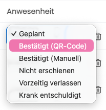 Der Fahrlehrer kann die Anwesenheit jederzeit anpassen.